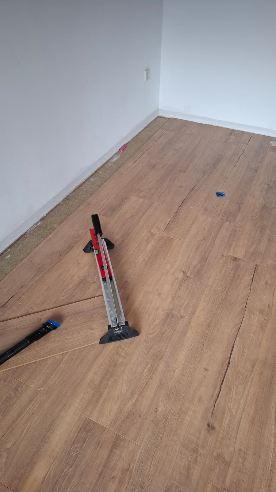 Ich entferne die Keile und montiere Sockelleisten nur an der Wand, nicht am Boden.